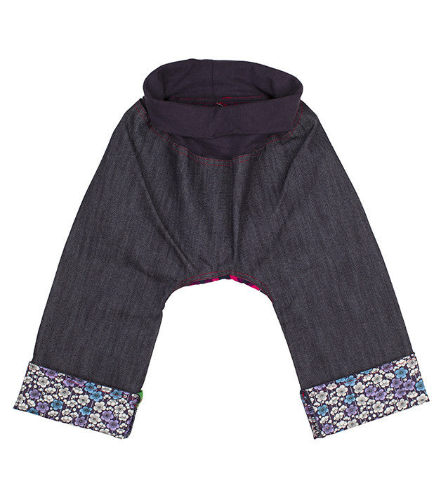 Fun and bright girl's Chubba's with heavy duty cotton navy base with hot pink large scale floral bottom panel and pretty purple floral turn up cuffs. Big sizes also feature a pretty purple floral in the two front pockets. Not forgetting our signature Tummy Toastie for comfort and ease.åÊ